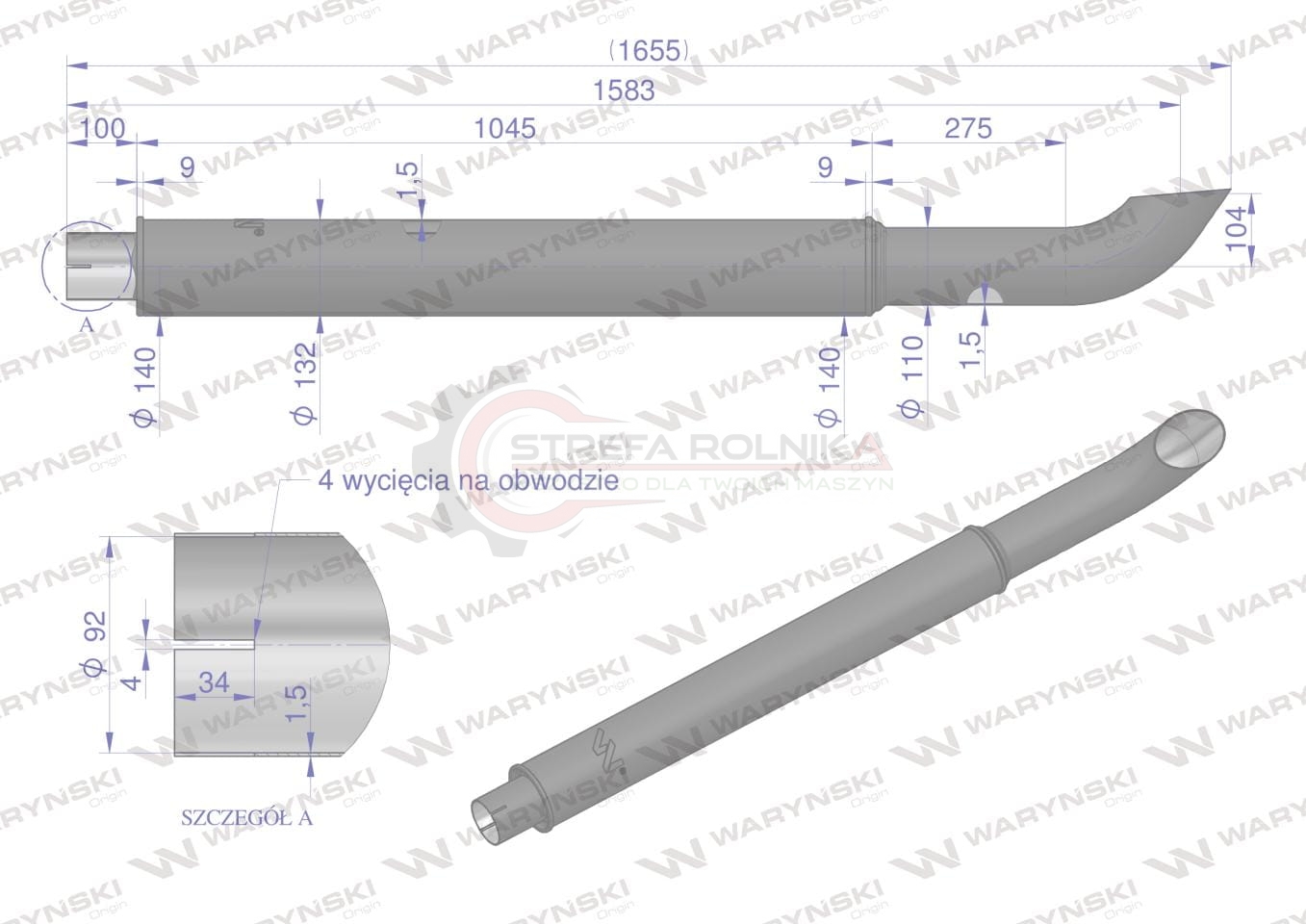 Tłumik rura wydechowa Renault Ares WARYŃSKI