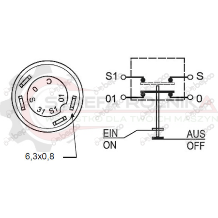 WŁĄCZNIK BLOKADY MASSEY FERGUSON 333, 334V, 340, 342, 350, 352, 353, 353LX, 353S, 354AP, 354AQ, 354F, 2203, 302, 304, 356, 3384575M1