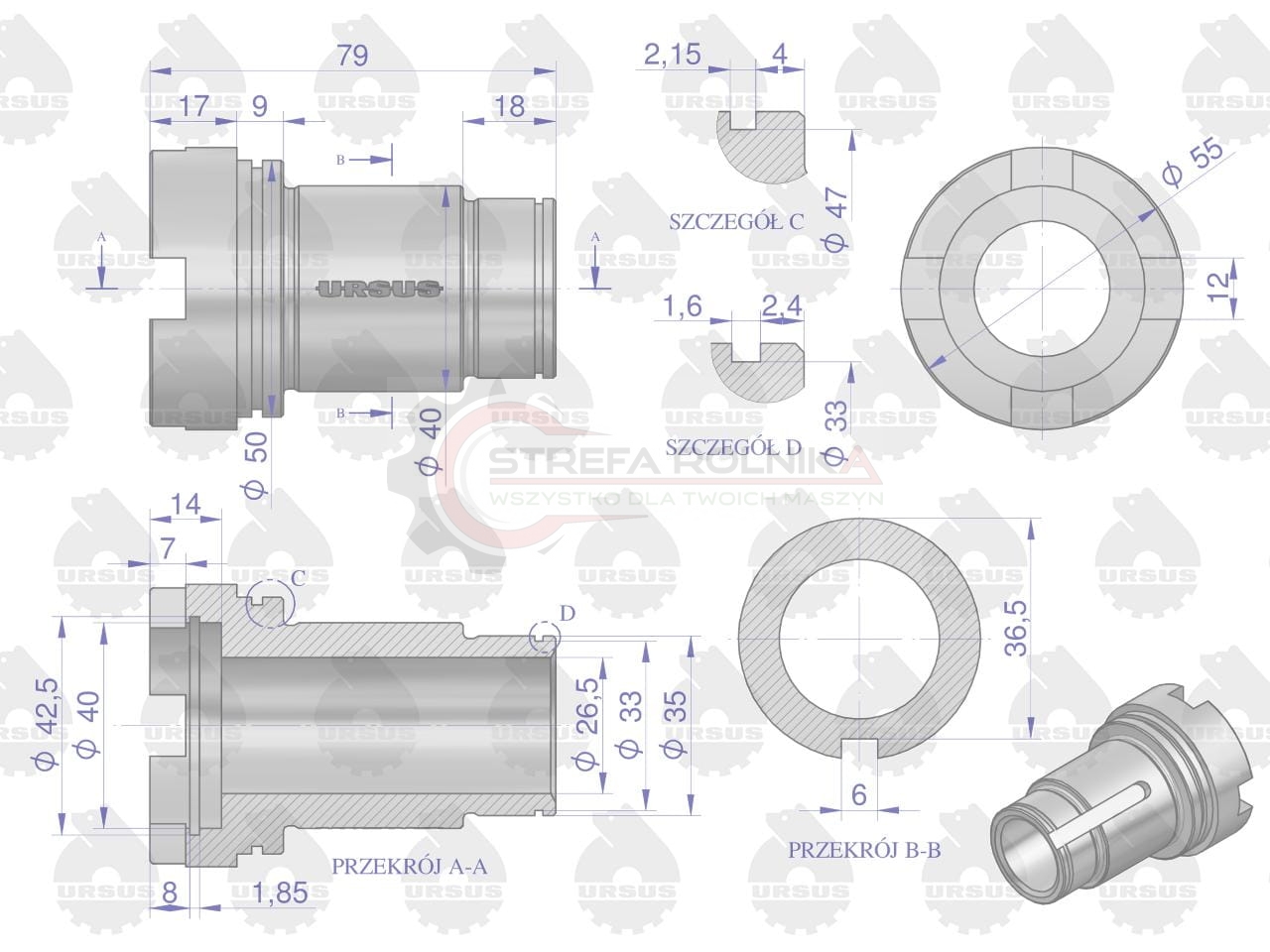 Wałek zewnętrzny napędu pompy C-385 ORYGINAŁ URSUS