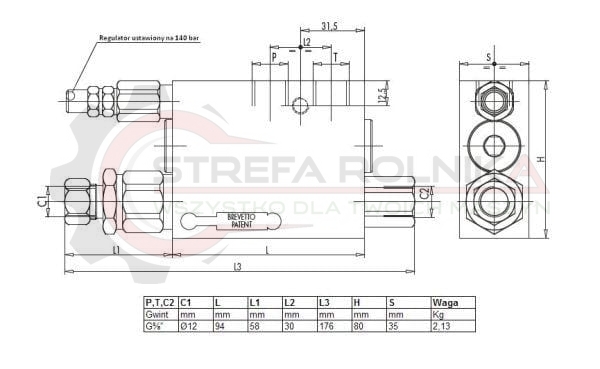 Opis produktu: VRAP60/80DE - V0290 Zawory te zostały zaprojektowane do siłowników w pługach obracalnych. Zapewniają automatyczne przełączenie przepływu oleju, co zapewnia płynną zmianę ruchu siłownika i tym samym ruch obrotowy pługa. Zawory są wyposażone w zawór zwrotny bliźniaczy sterowany, który zapewnia zabezpieczenie w dowolnej pozycji. - Gwint : BSP 3/8" - Ciśnienie max. : 400 bar