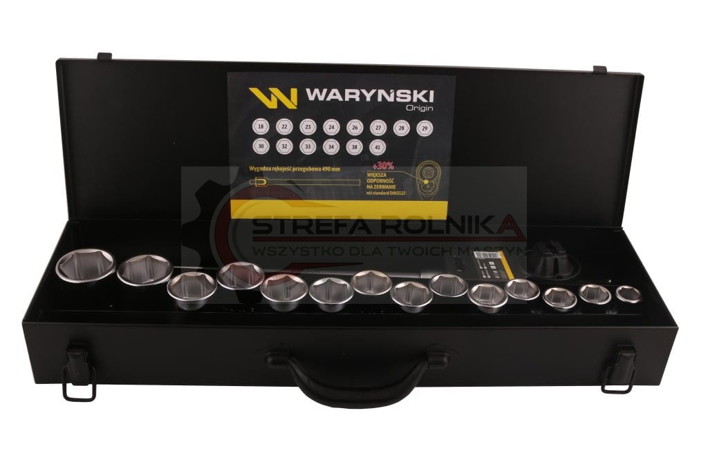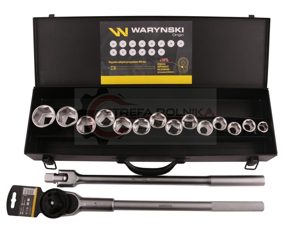 Zestaw nasadek 3/4 z odporną grzechotką i rękojeścią przegubową 16 el. Waryński