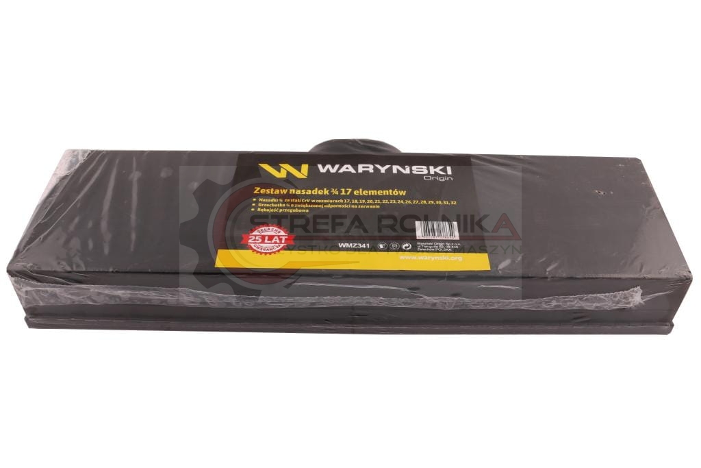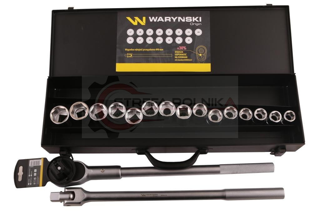 Zestaw nasadek 3/4 z odporną grzechotką i rękojeścią przegubową 17 el Waryński