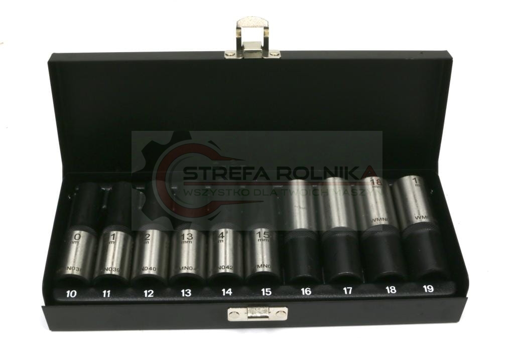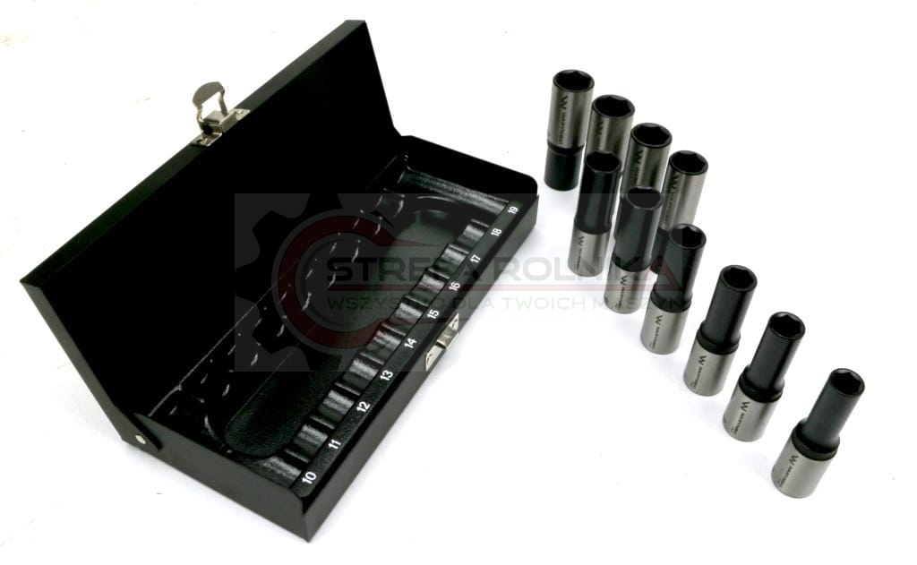 Zestaw nasadek przedłużanych 1/2 CrV 10, 11, 12, 13, 14, 15, 16, 17, 18, 19 w kasecie 10 el Waryński