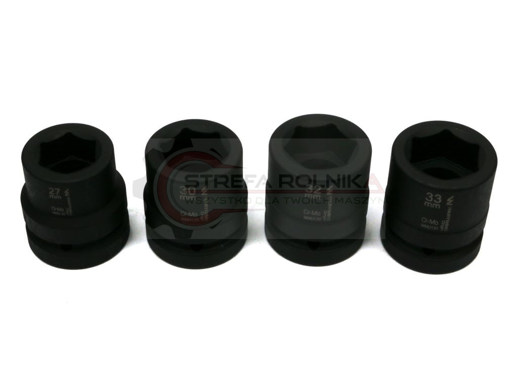Zestaw nasadek udarowych 1" 4 cz. 27. 30. 32. 33 mm ze stali CrMo DIN 3129 Waryński